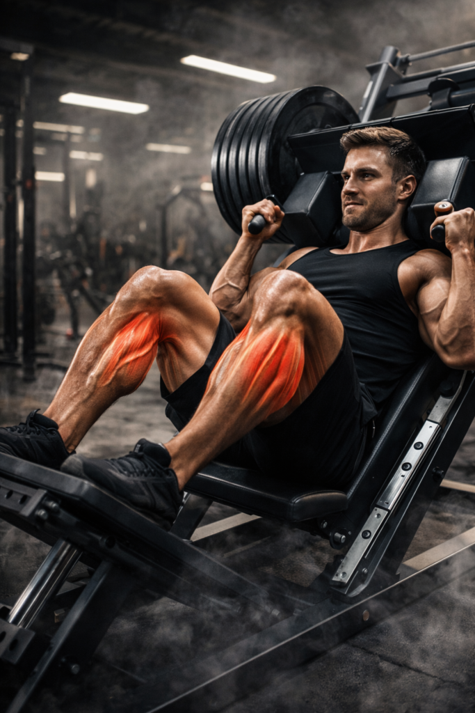 Pour la prise de masse jambes, le Hack Squat est redoutable. Il permet d’utiliser des charges lourdes tout en conservant une bonne stabilité. Cela favorise un stress mécanique élevé, indispensable à l’hypertrophie.